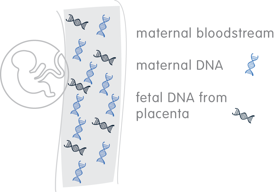 The small amounts of fetal DNA present in the mothers blood are carefully examined to see if there is an abnormal chromosome count.